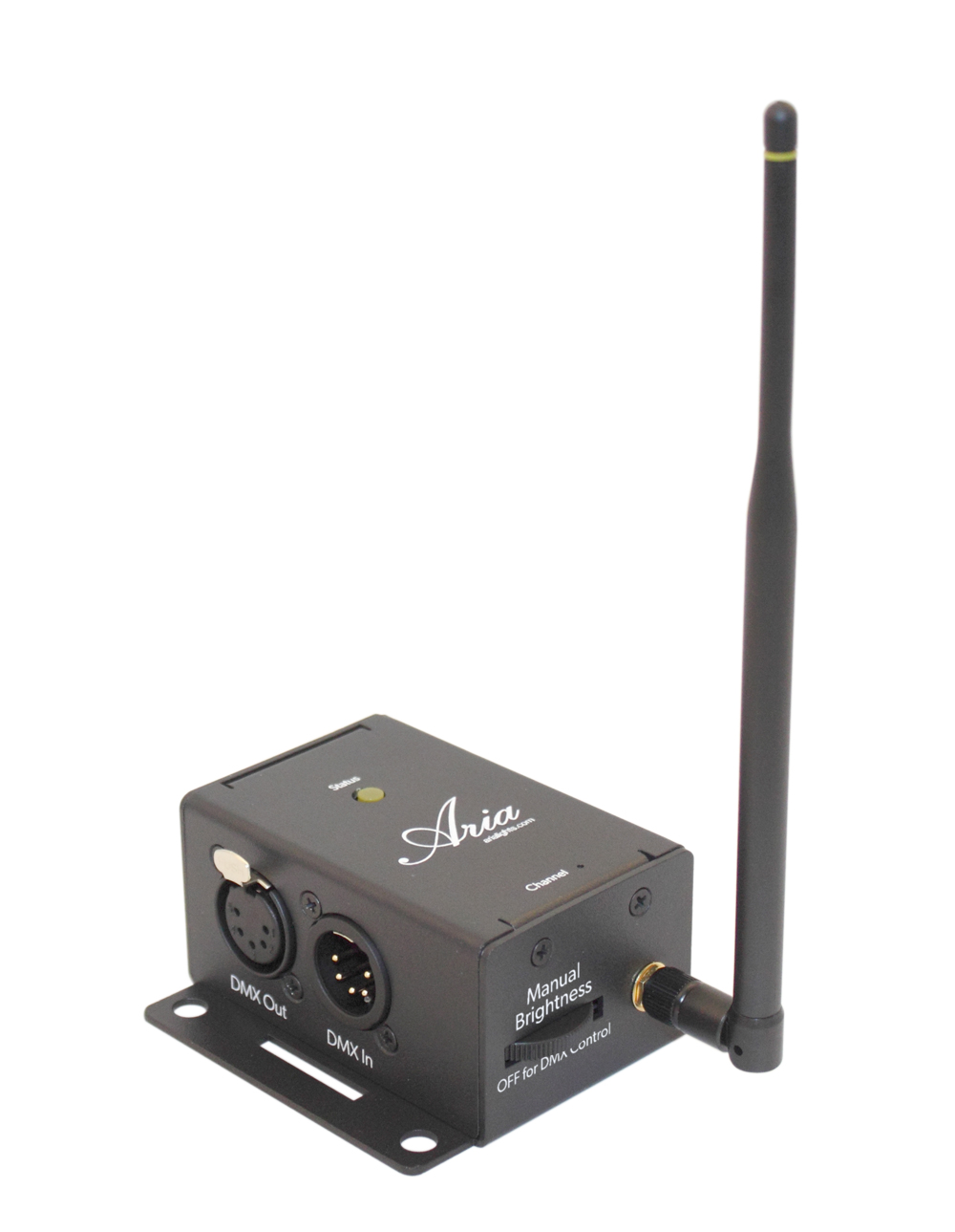 Control all your Aria Lights in the pit or on stage wirelessly using your house lighting console. Our Forte DMX Transmitter accepts your house DMX signal and dims lights in up to eight separate banks. Dim the power on the winds during a string number or provide different light levels on portions of the stage. True full-range dimming from 100% all the way to zero percent.
